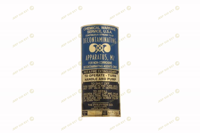PLAQUE LAITON DECONTAMINATEUR FYR USA
